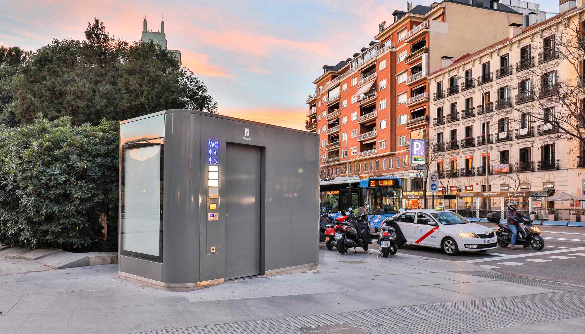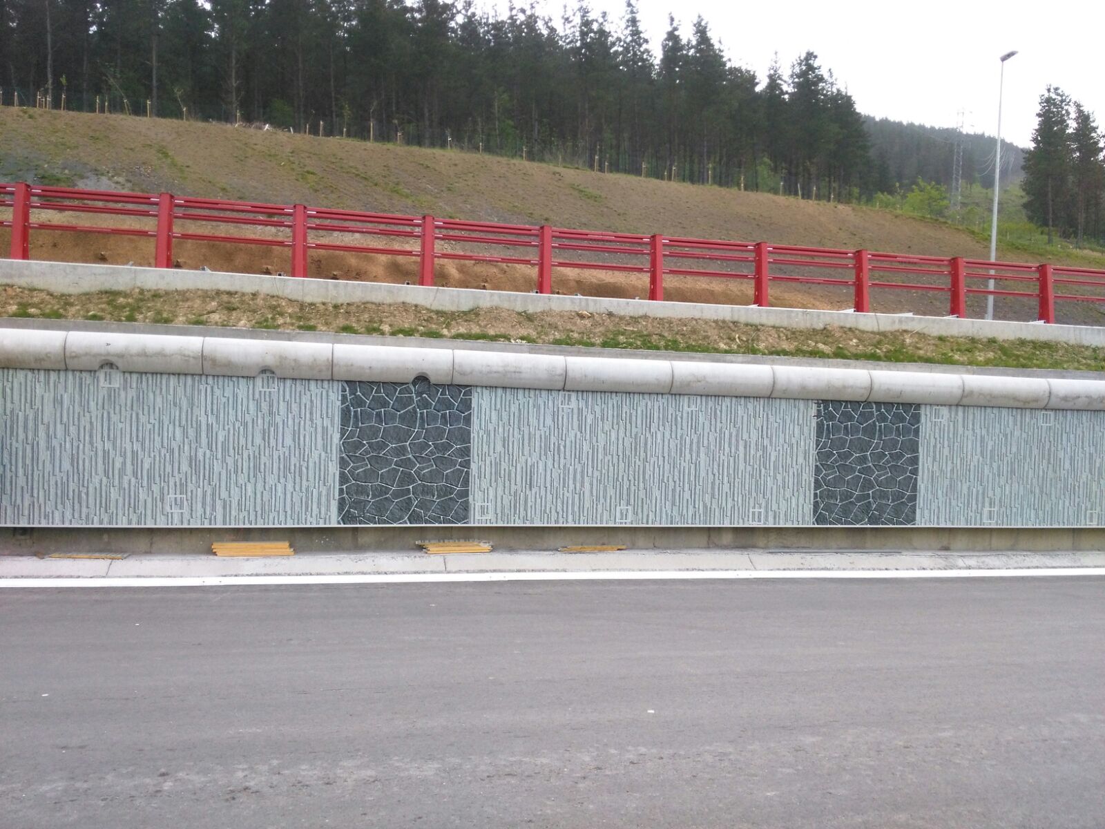 Año 2023 Diseño, suministro y montaje de revestimiento con panel tipo túnel y decoración realizada en acero vitrificado. Combinación con acero corten retroiluminado.